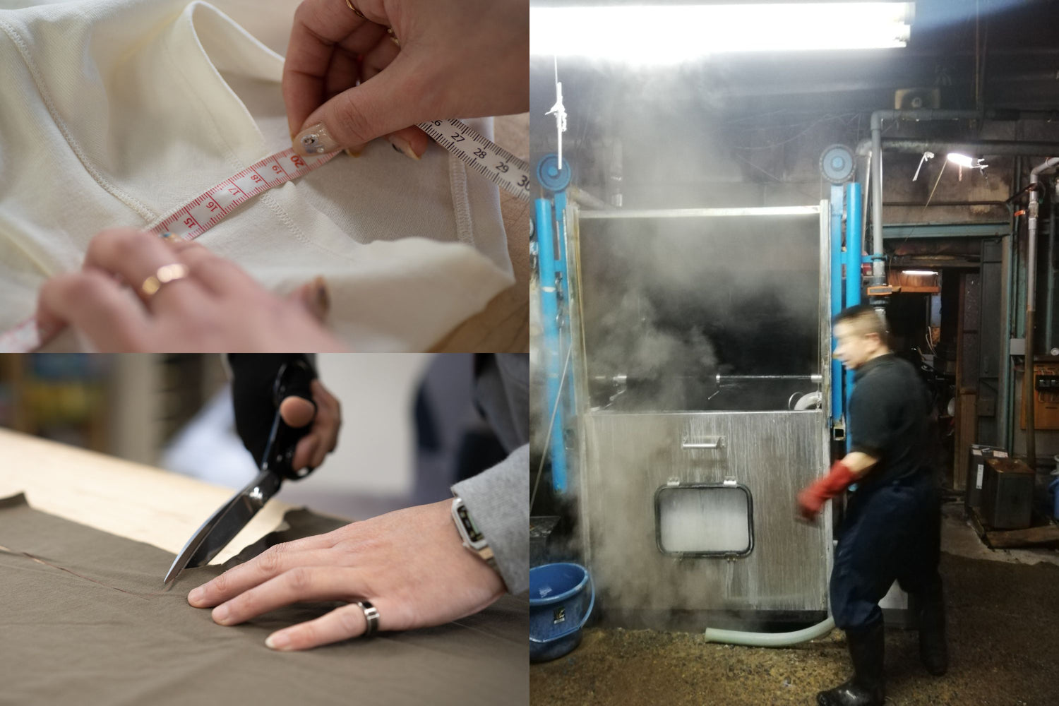 OFLAの製品は、国内の熟練した職人によって一枚一枚丁寧に仕立てられています。染色もまた、一枚一枚丁寧に染め上げてもらいました。縫製は岩手、染色は東京。いずれも長年培われた技術を持つ工房で行われています。決して大量生産では叶わない、細部にまで宿る手仕事の確かさ。